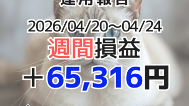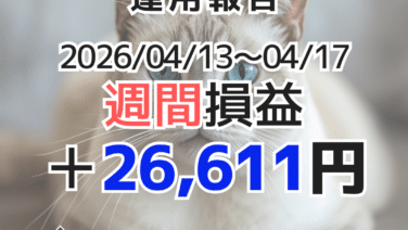 週間実績 【実績公開】昇給を待つより確実!本業の裏で手堅く+26,611円を稼ぐEAの安定感(4/13〜4/17) 2026年4月13日〜17日のFX自動売買(EA)実績は+26,611円でした。会社員としてクタクタになるまで働いている裏で、完全放置で「週給2.6万円」を稼ぎ出す手堅いツールの安定感を公開。本業以外の収入の柱を作る無料モニター参加手順はこちら。 2026.04.19 週間実績運用実績