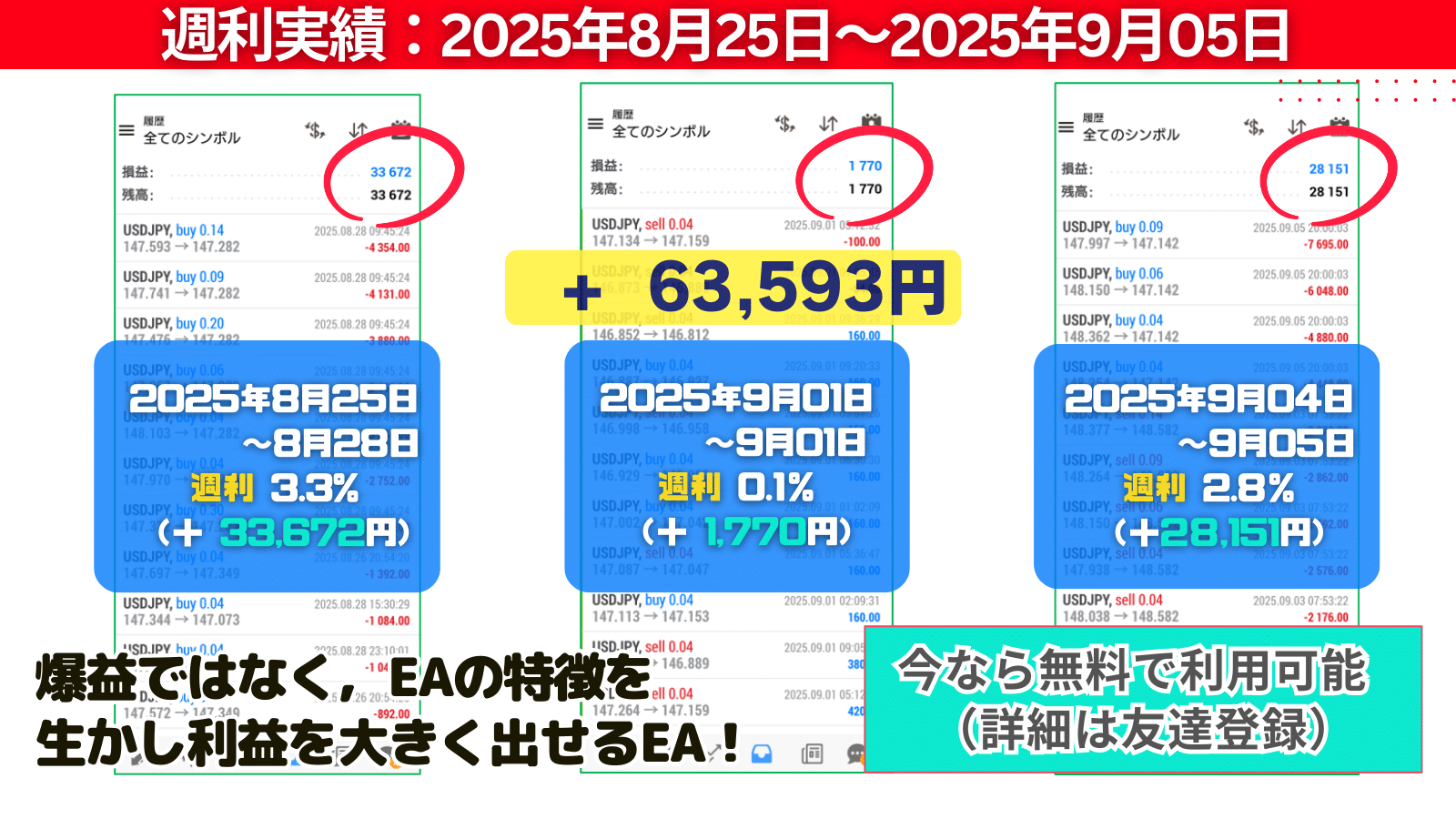 これまでの取引データを基にした高勝率のアルゴリズムが導入されており、信頼性の高いEAです。つまり、初心者でも実績に裏打ちされた安心感の中で運用できます。