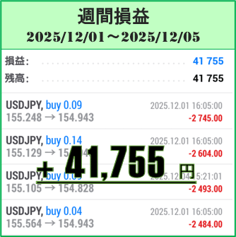2025年12月第1週(12月1日~12月5日)のFX自動売買(EA)運用実績を公開します。